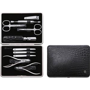 ZWILLING Set Manicure e Pedicure 10 Pezzi - Acciaio Inox Lucido, Custodia in Vera Pelle Effetto Coccodrillo, Nero