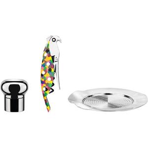 Alessi Set da Vino GAM32SET - Cavatappi Sommelier, Tappo ad Espansione e Sottobottiglia di Design
