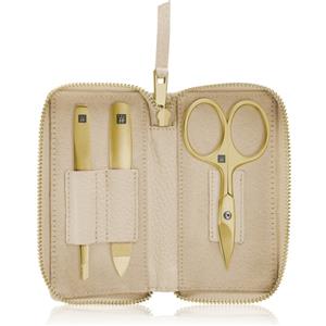ZWILLING Set Manicure Gold Edition - 3 Pezzi con Custodia in Vera Pelle, Forbici per Unghie, Lima Zaffiro e Pinzetta Obliqua