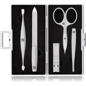 ZWILLING Set Manicure e Pedicure 5 Pezzi con Custodia in Alluminio e Inserto in Velluto Nero, Strumenti in Acciaio Inox Satinato