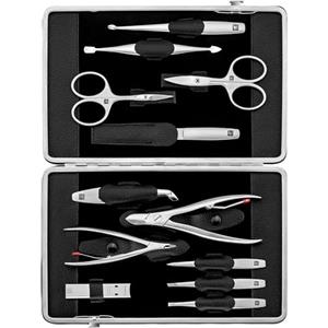 ZWILLING Set manicure, 12 pezzi, set completo per la cura delle unghie e la pedicure, custodia in vera pelle con cerniera, premium, nero