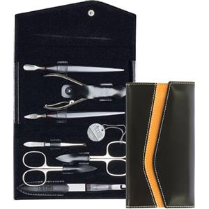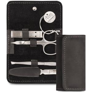 Nippes Solingen Set da Manicure Professionale 7 Pezzi in Acciaio Inox, Colore Nero e Marrone, Ideale per Casa e Viaggio