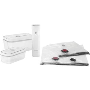 ZWILLING Fresh & Save CUBE Set di avviamento per sottovuoto M - 5 pezzi, trasparente e bianco con 2 contenitori, pompa a vuoto, misurino ed etichette NFC