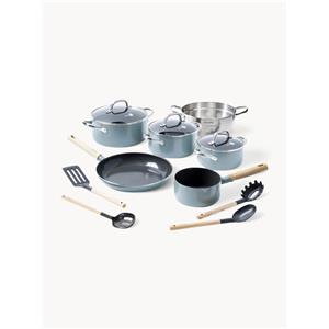 GreenPan Mayflower Set di Pentole e Padelle in Ceramica Antiaderente - 13 Pezzi, Senza PFAS, Induzione, Blu Fumé