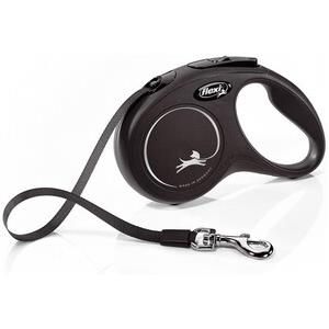 FLEXI Guinzaglio New Classic Retrattile 5 m Nero - Taglia S, Fettuccia con Sistema Frenante a Corsa Breve, Fino a 15 kg