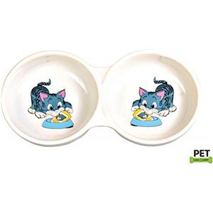 TRIXIE Ciotola Doppia in Ceramica 2 x 0,15 lt - Ø 11 cm, Lavabile in Lavastoviglie, Design Creativo