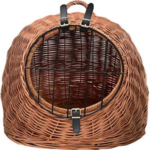 Aumüller Cuccia/Trasportino per Gatti in Vimini - 60 cm, con Porta Rimovibile e Cinturini in Pelle