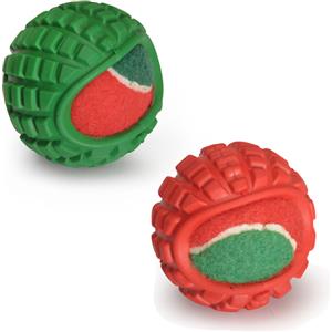Camon Gioco Natalizio per Cane - Pallina da Tennis in Gomma con Squeaker, Ø 6 cm