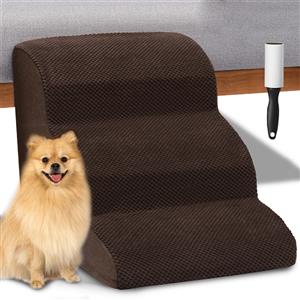 BAKAJI Scala per Animali Domestici con 3 Gradini, Rullo Rimuovipeli e Rivestimento Sfoderabile in Tessuto a Coste, Rampa per Gatti e Cani Anziani