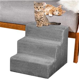 BAKAJI Scala per Animali Domestici - Rampa con 3 Gradini, Rivestimento Sfoderabile in Peluche, Imbottitura Alta Densità, 45,5 x 36 x 34 cm, Grigio