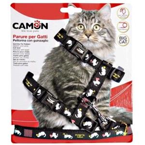 Camon Parure Pettorina e Guinzaglio per Gatti di Grossa Taglia - Nylon Resistente, Disponibile in Rosso, Blu e Nero
