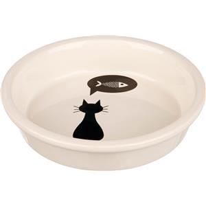 TRIXIE Ciotola in Ceramica per Gatti - 250 ml, Diametro 13 cm, Bianco/Nero con Motivo a Gatto