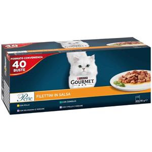 Purina Gourmet Perle Filettini in Salsa Multipack 40x85g - Pollo, Coniglio, Vitello, Selvaggina