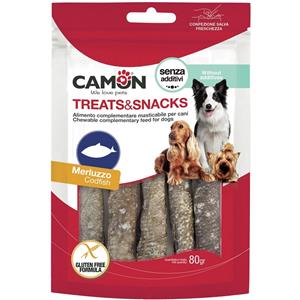 Camon Snack Roll di Merluzzo 80g - Deliziosi spuntini per cani adulti, senza additivi e senza glutine, ricchi di omega 3-6