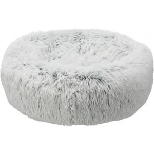TRIXIE Letto Rotondo Harvey per Cani e Gatti - Cuscino Integrato, Peluche a Pelo Lungo, Ø 60 cm, Bianco/Nero, Fondo Antiscivolo
