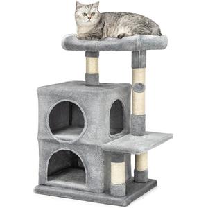 Lionto Tiragraffi per Gatto 80 cm - Grigio Chiaro con Nicchie, Letto e Pallina Giocattolo