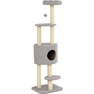 PawHut Albero Tiragraffi per Gatti a 5 Livelli con Cuccia Morbida e Giochi in Corda Sisal, Grigio e Beige