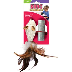 KONG Feather Mouse - Giocattolo in peluche per gatti con erba gatta, 17,5 cm, tasca richiudibile e coda di piume