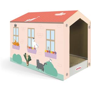 Record Tiragraffi Gatto Casetta in Cartone - Dimensioni 48,5 x 25 x 34h cm, Contiene Catnip e Funzione Cuccetta
