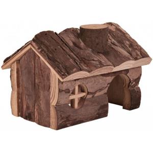 TRIXIE Casetta Hendrik in legno naturale per criceti - 15 x 11 x 12 cm, design con camino e finestra