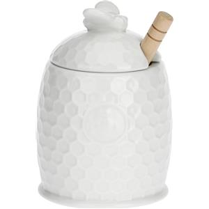 La Porcellana Bianca Aperegina Vasetto Miele Servimiele 12x8cm in Porcellana con Design ad Alveare