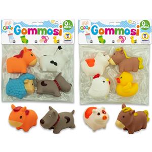 Teorema Animali Gommosi Della Fattoria - Set Assortito di 4 Pezzi con Pollo, Anatra, Cane, Cavallo, Pony, Mucca e Maiale