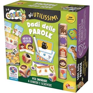 Lisciani Giochi - Carotina Gli Utilissimi Dadi Educativi: Gioco delle Parole con 5 Dadi in Legno, Penna Scrivi e Cancella, Cancellino e Schede Attività