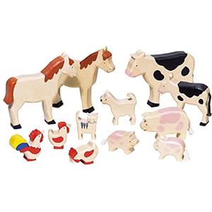 Goki Figurine Animali da Fattoria in Legno - Set da 12 Pezzi, Altezza 3-11 cm, Robuste e di Alta Qualità