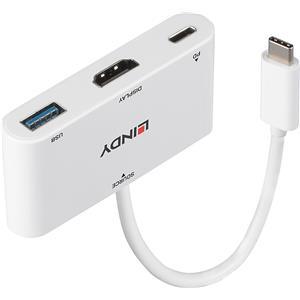 Lindy 43340 Adattatore Grafico USB 3.1 Tipo C a HDMI con Porta USB Tipo A e Power Delivery - 3840 x 2160 Pixel - Bianco