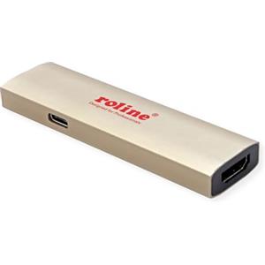 ROLINE Adattatore USB-C a HDMI 8K 60Hz con Power Delivery 60W e Alloggiamento in Alluminio Dorato