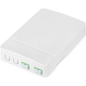 DIGITUS Alloggiamento FTTH con 2x accoppiatori duplex LC/APC - Fibra ottica monomodale, cassetta di giunzione integrata, IP45, montaggio a parete, bianco