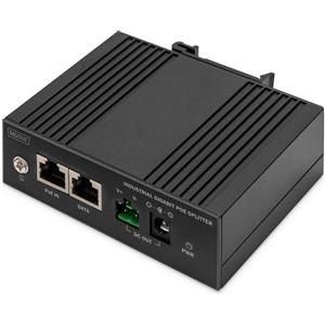 DIGITUS Splitter PoE Gigabit Ethernet Industriale 60W - 10/100/1000 Mbps - Montaggio su Guida DIN - Nero, Conforme a IEEE802.3af/at/bt