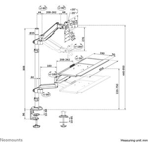 Neomounts DS90-325BL1 Postazione di Lavoro Sit-Stand da Tavolo Regolabile in Altezza per Schermi fino a 32" - Capacità fino a 9 kg