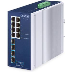 PLANET IP30 DIN-rail Switch di rete Industrial L3 8P Gestito Gigabit Ethernet (10/100/1000) Alluminio, Blu - IGS-6325-8UP2S2X