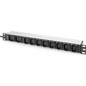 DIGITUS Ciabatta Elettrica da 19" con 10 Prese AC (8x C13 e 2x C19), Spina C20, 1U, 250VAC, 50/60Hz, 10A, Profilo in Alluminio, Cavo di Alimentazione di 2 m