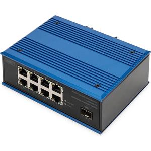 Digitus DN-651136 Switch di rete Gigabit Ethernet Industriale a 8 Porte Non Gestito con 1 Collegamento SFP - Montaggio DIN-Rail e a Parete, IP40