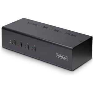 StarTech.com KVM Switch DisplayPort a 4 Porte con Doppio Monitor, Risoluzione 4K 60Hz, 2x Hub USB 5Gbps, 2x Porte HID USB 2.0, Commutazione Hotkey e Pulsanti, Audio 3,5 mm, HDCP