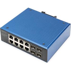 Digitus Switch di rete industriale 10 porte Gigabit Ethernet PoE (8x RJ45 2x SFP) L2 gestito, IP40, montaggio su guida DIN
