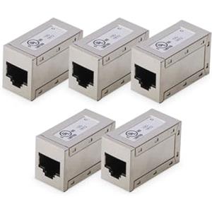DIGITUS Accoppiatore RJ45 Cat 6 - 5 pezzi, Prolunga LAN, Compatibile PoE, Modulare, Schermato, Argento