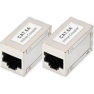 Digitus DN-93905 - Accoppiatore RJ45 Cat 6A Schermato - 2 Pezzi - Prolunga Cavo LAN Compatibile Poe per Switch, DSL, Modem, Router, PC - Argento