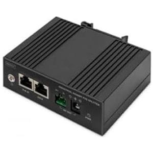 DIGITUS Splitter PoE Gigabit Ethernet Industriale 60W - 10/100/1000 Mbps - Montaggio su Guida DIN - Nero, Conforme a IEEE802.3af/at/bt