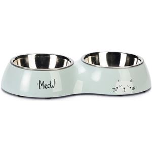 Karlie Doppia Ciotola per Gatti Rana - Design Moderno, 2 x 200 ml, Plastica e Acciaio Inox, Lavabile in Lavastoviglie