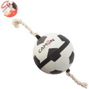Camon Palla Da Calcio Bianco e Nera per Cani con Maniglie in Corda - Gioco in Gomma di 22 cm