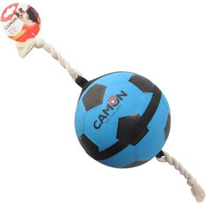 Camon Palla Da Calcio Blu e Nera per Cani con Maniglie in Corda - Gioco in Gomma di 22 cm