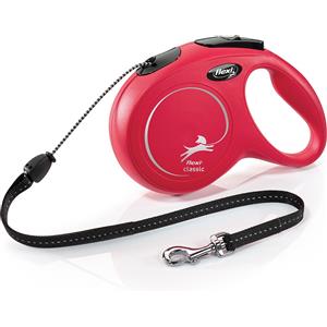 Flexi Guinzaglio New Classic S Corda 5m Rosso per Cani fino a 12kg con Sistema Frenante e Elementi Riflettenti
