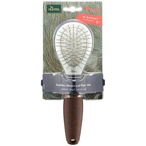 Hunter Spazzola Combinata 20 cm - Per Spazzolare e Curare Cani con Setole Morbide e Nichelate