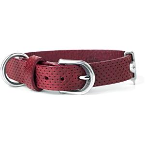 MyFamily Collare Monza in Pelle Italiana Rosso per Cani - Finiture in Argento Antico, Confortevole e Resistente, Taglia SM 30-36cm