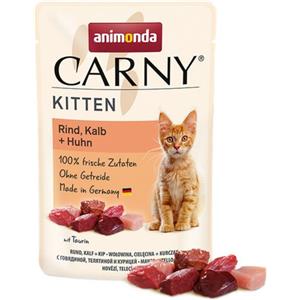 Animonda Carny Kitten - Cibo umido per gattini con Manzo, Vitello e Pollo, 12 buste da 85 g, senza coloranti e conservanti