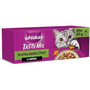 Whiskas Tasty Mix - Cibo Umido Completo per Gatti Adulti, Mix Carne e Pesce, 40 Buste da 85g