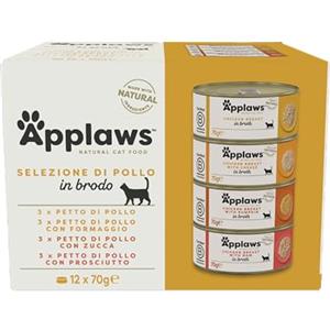 Applaws Cibo Umido per Gatti Adulto - Selezione di Pollo 100% Naturale in Brodo, 12 x 70g
